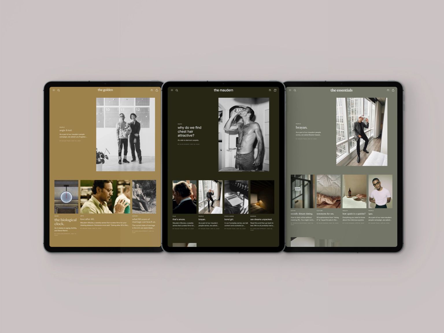 The maudern is on a mission to normalize conversations about sexuality. Recognizing the diverse needs of the different age groups in their readership, maude decided to expand the maudern into separate verticals, each with a unique identity, and each offering topics that would be germane to different groups. The maudern explores modern intimacy through arts, science, and relationships; the essentials is aimed at covering the basics of sex ed, culture and navigating dating; and the golden focuses on health, changing bodies, and getting older with a partner.
